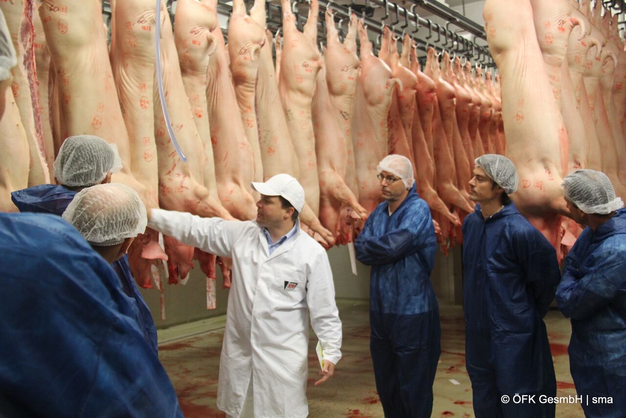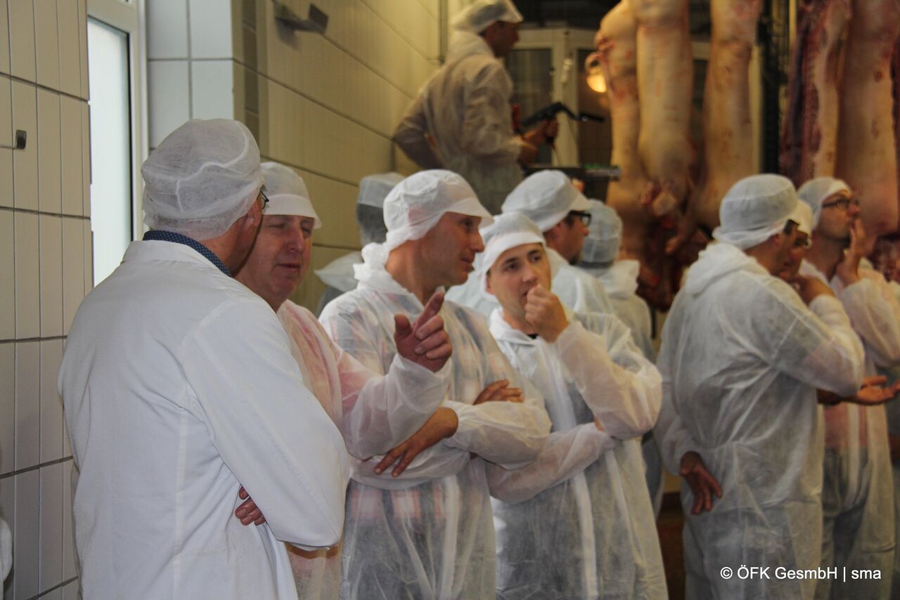 Im Juni haben rund 100 niederösterreichische Bäuerinnen und Bauern aus dem Schweinesektor bei drei Schlachthofbesichtigungen in Ober- und Niederösterreich teilgenommen und sich speziell über die Abläufe der Schlachtkörperbefundung durch die Veterinäre und der Klassifizierung informiert.