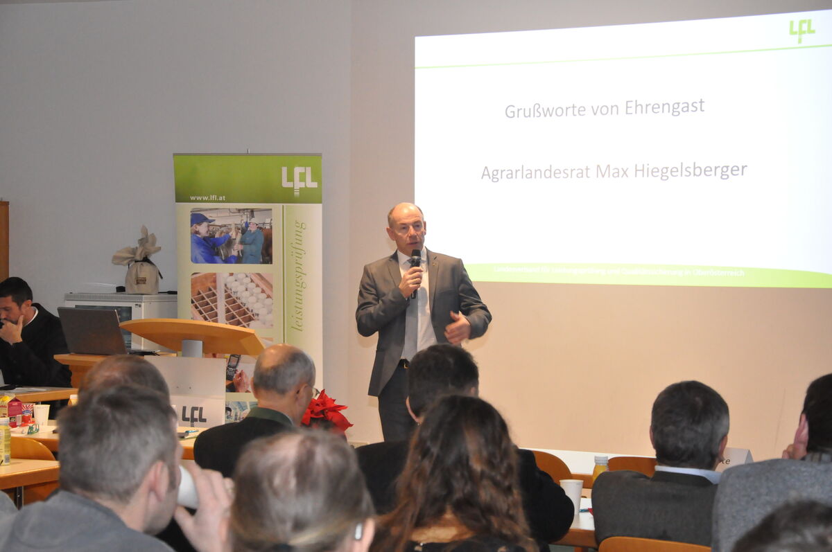 Landesrat Max Hiegelsberger hob in seinen Grußworten mit dem Fortbestand der Landesförderungen für Leistungsprüfung und Trinkwasseruntersuchung das Land OÖ als verlässlichen Partner hervor und gratulierte dem LfL für seine wichtige Arbeit für die oö. Landwirtschaft.